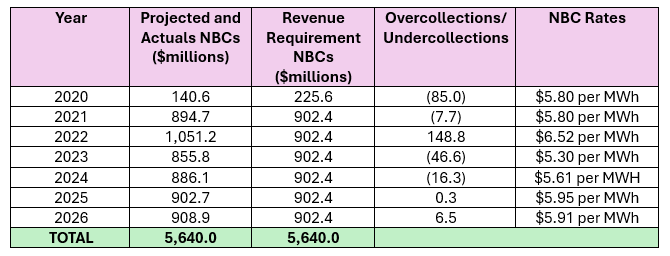 The table below lists the NBC rates dating back to 2020.