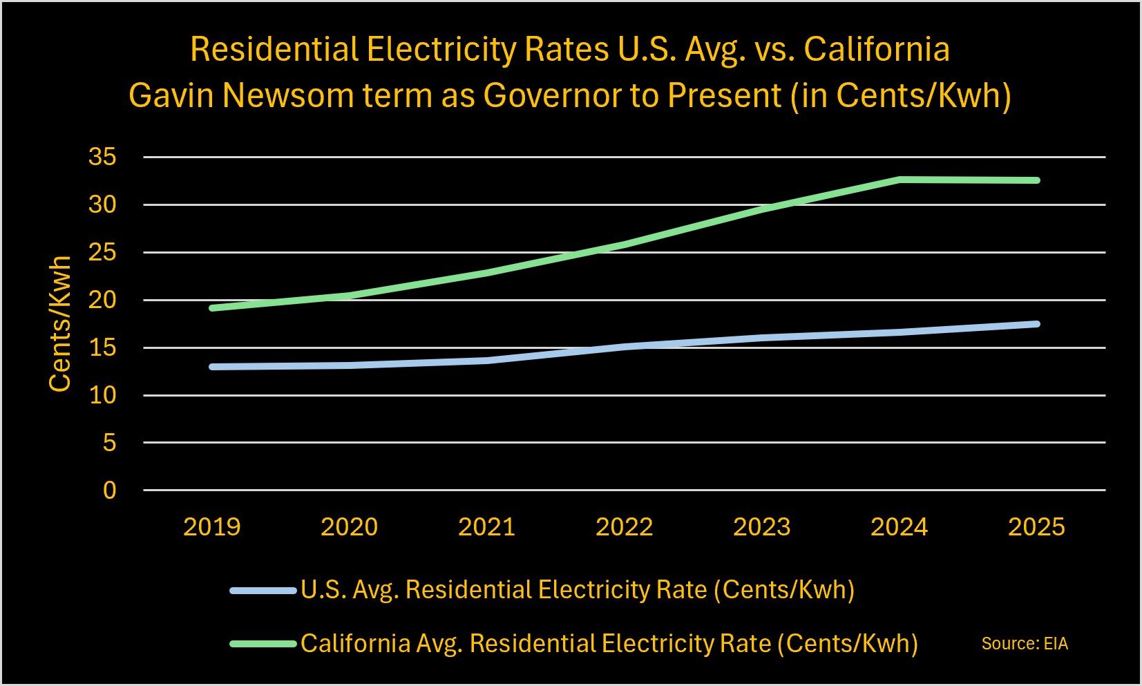 How Green is Gavin? "The chart below shows how electricity prices in California compare to the national average since Newsome became governor. Today, California residential electricity rates are 86% above the national average." ENVIRONMENTAL