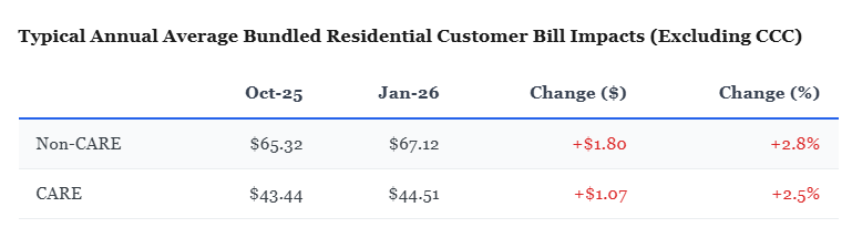 While transportation charges will decline, typical bundled residential bills are projected to increase modestly in 2026 due to higher gas procurement costs and Public Purpose Program surcharges, which offset transportation charge decreases (see chart below, which excludes the California Climate Credit).