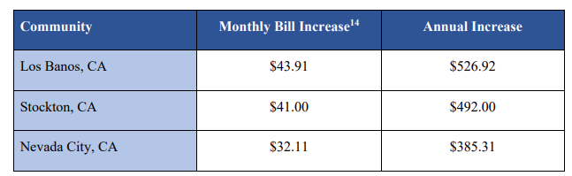 The Commission must now decide whether to preserve the PD’s bundled-leaning structure or adopt CalCCA’s corrections to avoid immediate cost impacts on departed load. (Below are sample rate impacts projected by CalCCA if the PD were to be adopted as-is.)